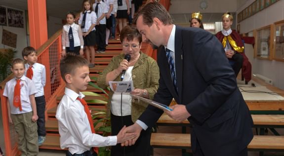 Brájer Éva alpolgármester köszöntőjében kiemelte, hogy szép vállalást tettek a Szent István Emlékévhez kapcsolódva az iskola osztályai. Az alpolgármester köszönetet mondott István király szellemiségének és a történelmi hagyományok ápolásáért. Brájer Éva elmondta, hogy a „Szeretlek Székesfehérvár” rajz és reklámfilm pályázatra színvonalas alkotások érkeztek. Székesfehérvár alpolgármestere az újonnan elkészült szobor kapcsán gratulált az iskola igazgatójának és a szülői munkaközösségnek.