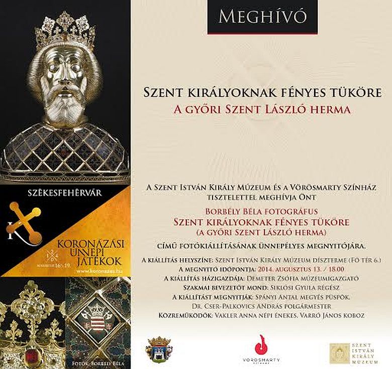 2014. augusztus 13-án, szerda délután 17.30-tól tartják Borbély Béla fotográfus, a Szent Királyoknak Fényes Tüköre című fotókiállításának ünnepélyes megnyitóját. A tárlatnak a Szent István Király Múzeum Díszterme (Fő tér 6.) ad majd otthon. Az eseményen szakmai bevezetőt mond Siklósi Gyula régész, a kiállítást pedig Spányi Antal megyés püspök és dr. Cser-Palkovics András, Fehérvár polgármestere nyitja meg.