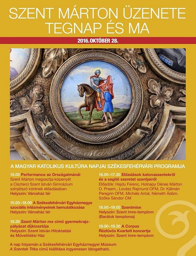 Október 28-án pénteken "Szent Márton üzenete tegnap és ma" mottóval a Magyar Katolikus Kultúra Napjai székesfehérvári programja keretében emlékeznek meg a püspök születésének 1700 éves évfordulója alkalmából. A nap folyamán a Székesfehérvári Egyházmegyei Múzeum A szentek titka című kiállítása ingyenesen látogatható.