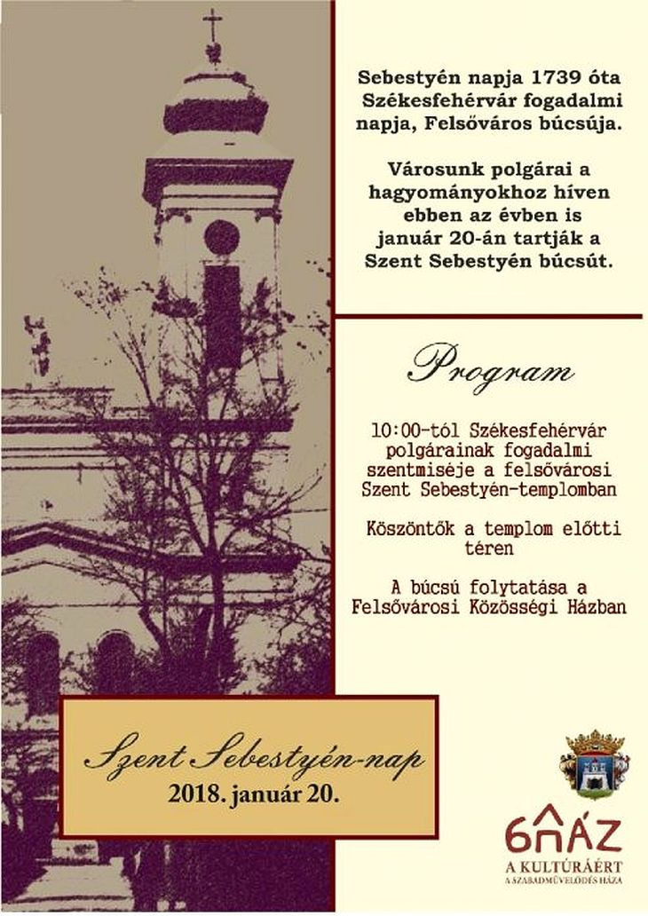 Szombaton, január 20-án, Szent Sebestyén napján lesz Felsőváros búcsúja. A fogadalmi mise délelőtt tíz órakor kezdődik a felsővárosi Szent Sebestyén-templomban. A misét követően köszöntők hangzanak el a templom előtti megújult téren. A búcsú a Felsővárosi Közösségi Házban zárul.