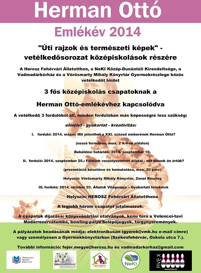 A háromfordulós versenyt a HEROSZ Fehérvári Állatotthona, a Székesfehérvári Vadmadárkórház, a Vörösmarty Mihály Könyvtár Gyermekrészlege és a Nemzeti Környezetügyi Intézet Közép-dunántúli Kirendeltsége közösen rendezi a Herman Ottó Emlékév keretében. A szervezők célja, hogy a középiskolás korosztályt is megmozgassák az állat- és természetvédelem területén.