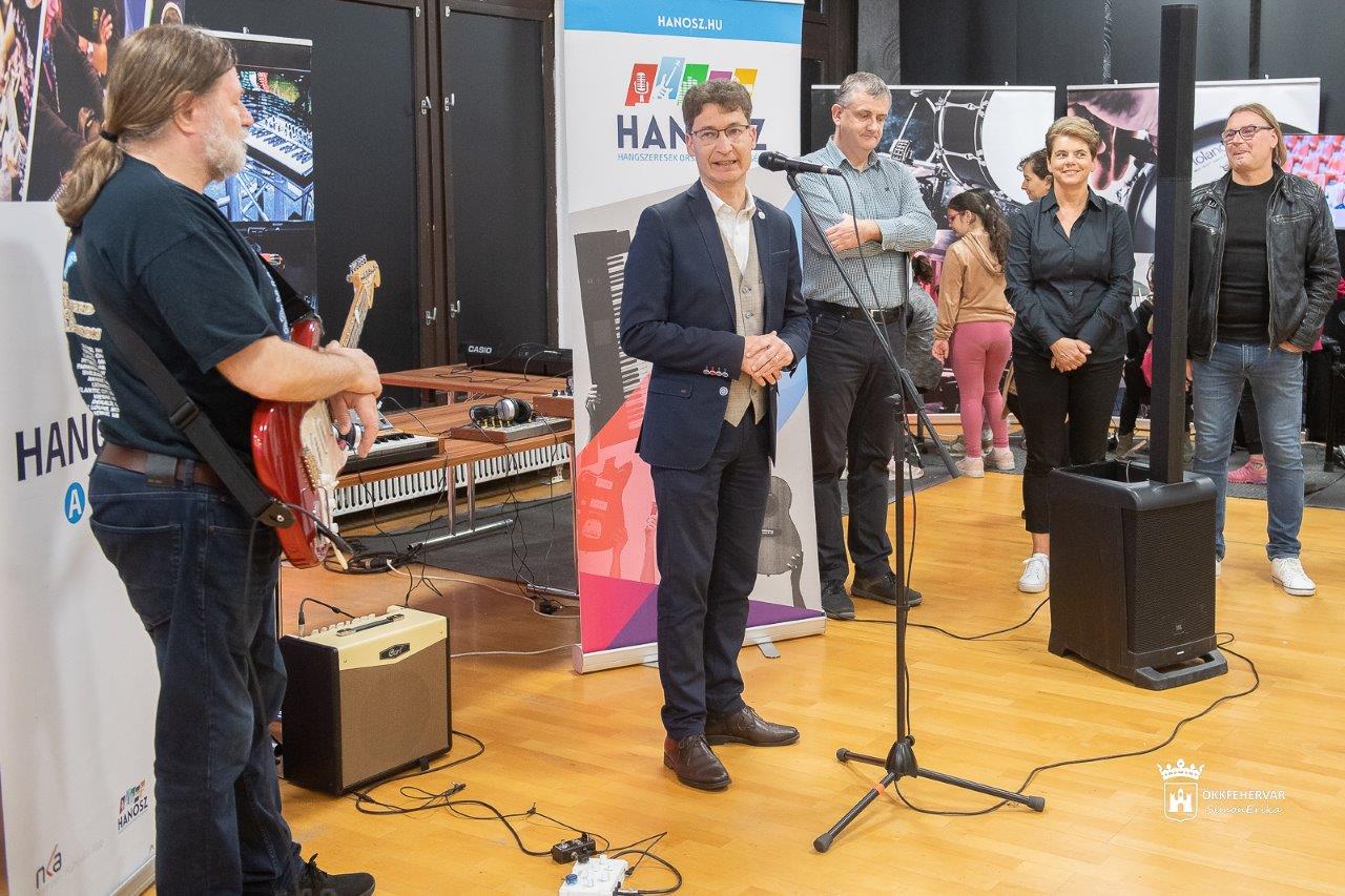 A megnyitón Benkő Zsolt, a Hangszert a kézbe kiállítás állandó közreműködője, zenész, gitártanár mutatta meg, hogy kellő szorgalommal és kitartással milyen szintre juthatnak el, akik most előszőr vesznek kezükbe hangszert. A rendezényen részt vett Juhász Zsófia, a Székesfehérvári Közösségi és Kulturális Központ igazgatója, valamint Király István, a Hermann László Zeneművészeti Szakgimnázium és Alapfokú Művészeti Iskola igazgatója is.