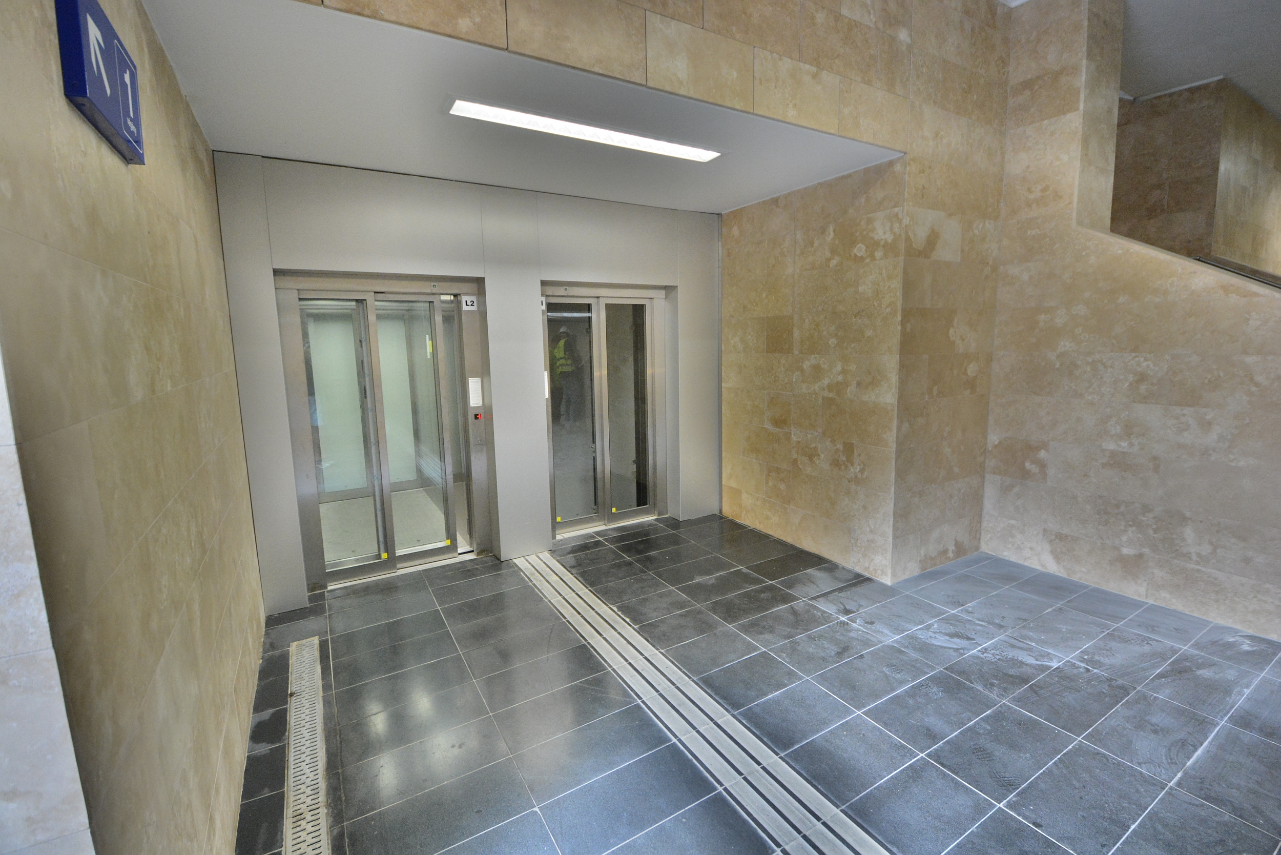 A vakok és gyengén látók közlekedésének segítésére vezető, illetve veszélyre figyelmeztető vezetősávok lettek kialakítva, a csarnokban, illetve a peronokon is.