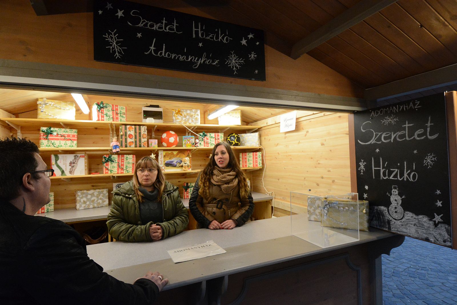 A Városház téren álló Szeretet- házikóban várják az adományokat, amelyeket önkéntesek gyűjtenek össze fehérvári rászorulóknak. A Püspökséggel szemben álló Városház téri házikóban az ajándékokat felcímkézett dobozokban várják: fiúnak vagy lánynak, illetve hány évesnek szánják az adományt.