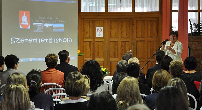 Száznál is több Fejér megyei tanár és óvodapedagógus részvételével kezdődött meg délelőtt a „SZERETHETÕ ISKOLA – Esélyteremtéstől a tehetséggondozásig” című, egész napos szakmai konferencia az idén 28 éves István Király Általános Iskolában. A megnyitón levetítették azt a videofilmet, melyben az intézmény tanulói fogalmazták meg véleményüket saját iskolájukról. Krählingné Kovács Tünde igazgató bemutatta szakmai tevékenységüket, annak eredményeit, melyek folyamatosan változtak, fejlődtek az elmúlt csaknem három évtizedben.