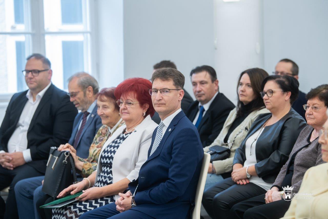 A beszédet követően a város polgármestere és a szakszervezet vezetője adta át az arany-, gyémánt-, vas-, rubin- és gránitokleveleket. Az ünnepség zárásaként Mészáros Attila alpolgármester mondott pohárköszöntőt, kifejezve Székesfehérvár háláját az oktató-nevelő munkáért, a 30, 40, 50 éves oktatási intézmények alapításában, majd a fejlesztésekben való szerepvállalásért.