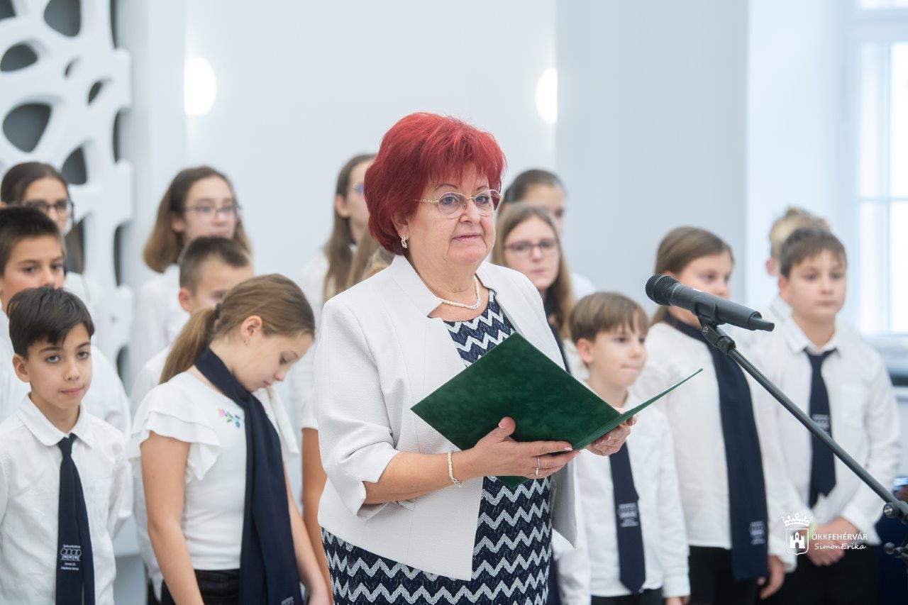 Az ünnepelteket a Zentai Úti Általános Iskola diákjai és pedagógusai köszöntötték. A műsorban az iskola gyermekkara először Fejér megyei népdalcsokrot énekelt Csikós-Árky Brigitta karnagy vezetésével. Ezt követően Ravasz László Kezdetben volt a szeretet című versét Kovácsné Marossy Éva tolmácsolásában hallhatta a közönség. A furulya kamarazenét követően Szabó Magda Hinni című versét szavalta, majd Selmeczi György Millenniumi ódájának harmadik tételét énekelte a kórus.