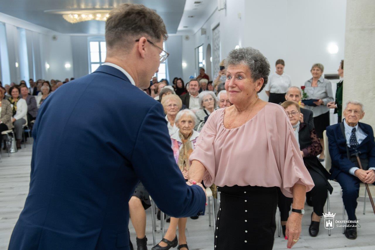 Eötvös József gondolatait idézve köszöntötte az ünnepelteket, egykori munkahelyük vezetőit, valamint a megjelent családtagokat Jámbor Ferencné, a Pedagógusok Szakszervezete Fejér Vármegyei Szervezetének elnöke. Mint mondta, a mai ünnepség lehetőséget ad arra, hogy köszönetet mondjanak a „színes” diplomásoknak a pedagógusszolgálatban eltöltött évekért.