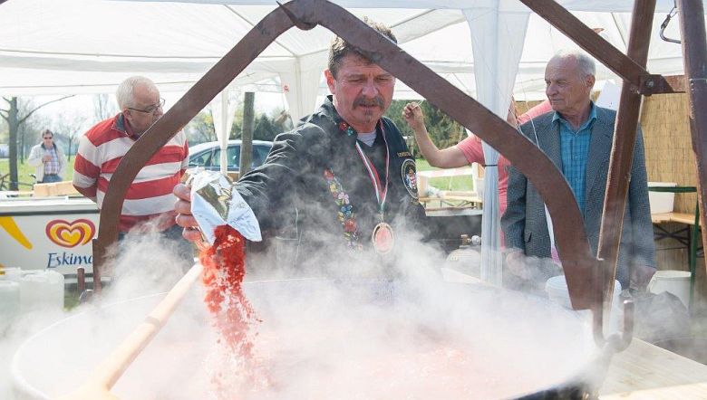 Így készül a városi halászlé. 2013-ban Fehérvár volt a díszvendége a Bajai Halászléfőző Fesztiválnak, most pedig egy hatalmas adag bajai halászlé vendégeskedik a Palotavárosi Halünnepen.