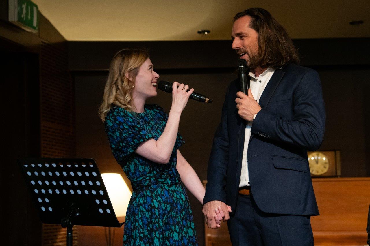 A közös, kalandos életről szóló duettel fogadták a sajtótájékoztatóra érkezőket a Vörösmarty Színházban a Benyovszky, a szabadság szerelmese történelmi musical két főszereplője, a címszerepet játszó György-Rózsa Sándor és a szerelmét, Afanáziát alakító Kiss Diána Magdolna színművészek.
