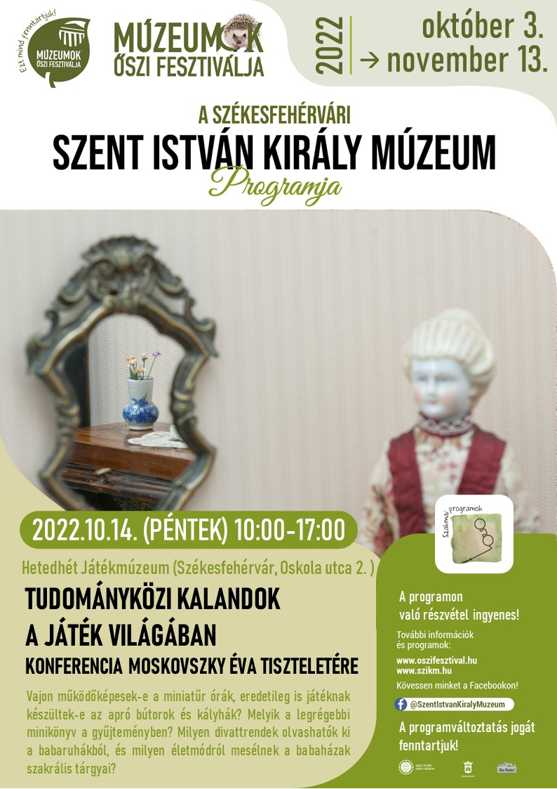 Tudományközi kalandok a játék világában címmel rendezik meg a játékkonferenciát Moskovszky Éva tiszteletére. Október 14-én, pénteken 10 órától a Hetedhét Játékmúzeumban a különböző tudományterületek képviselői mutatják be a Moskovszky-gyűjtemény különböző tárgytípusait. Néprajzkutató, művészettörténész, divattörténész, történész, könyvtáros, restaurátor egy konferencián beszél számos érdekességről, egyetlen gyűjtemény tárgyai kapcsán. Az eseményen való részvétel ingyenes, minden érdeklődőt szeretettel várnak.