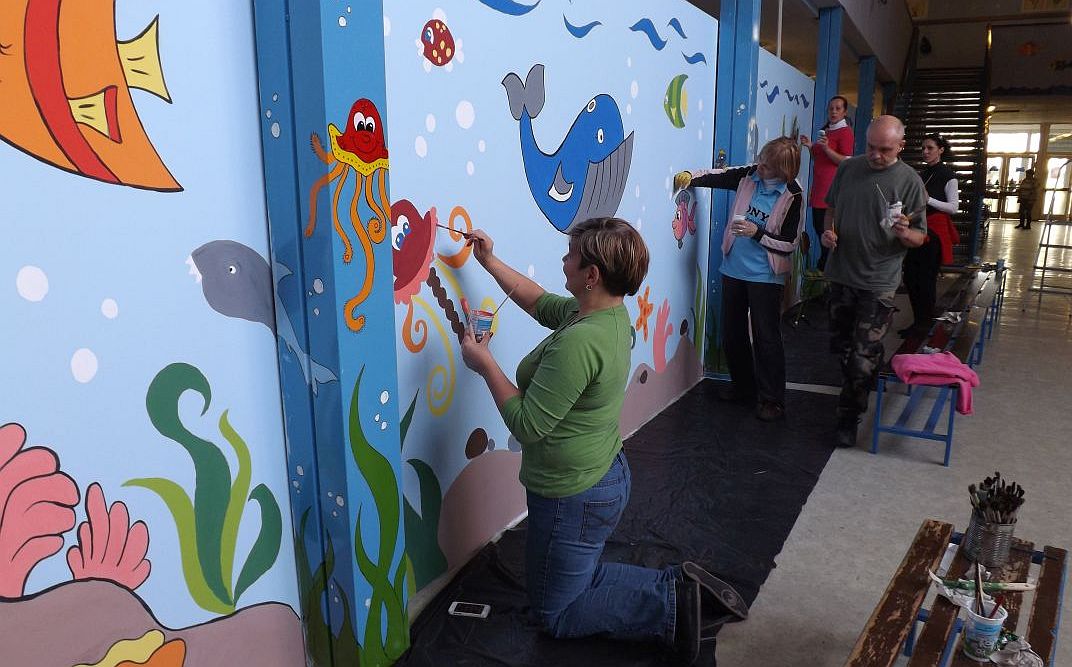 Ecsetet ragadtak a Vízivárosi Általános Iskola pedagógusai és csodálatos tengeri élővilágot varázsoltak azaulába, ahol mostantól színes vízi világ tárul az iskolások elé. A képeket Sajgó Anikó tanárnő irányításával az iskola tanárai készítették remélve, hogy a korábbi egyhangú falak sokkal jobban inspirálják majd a gyerekeket.