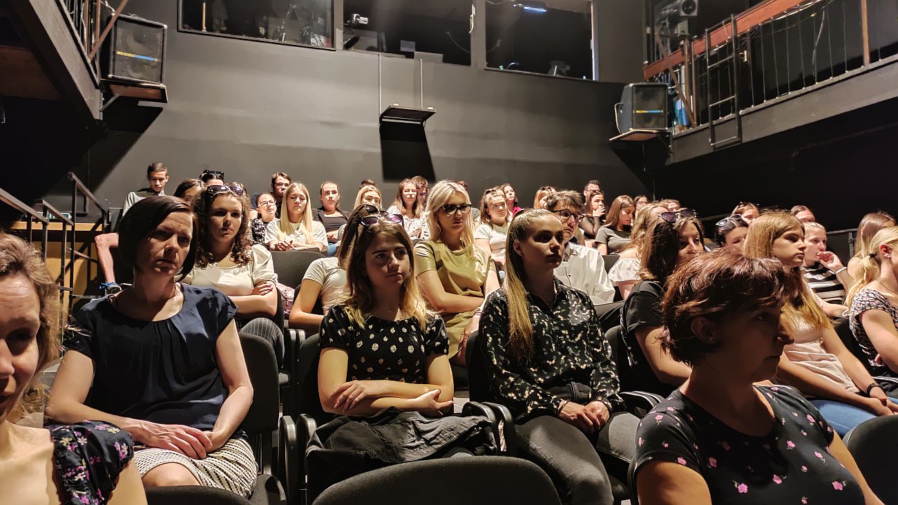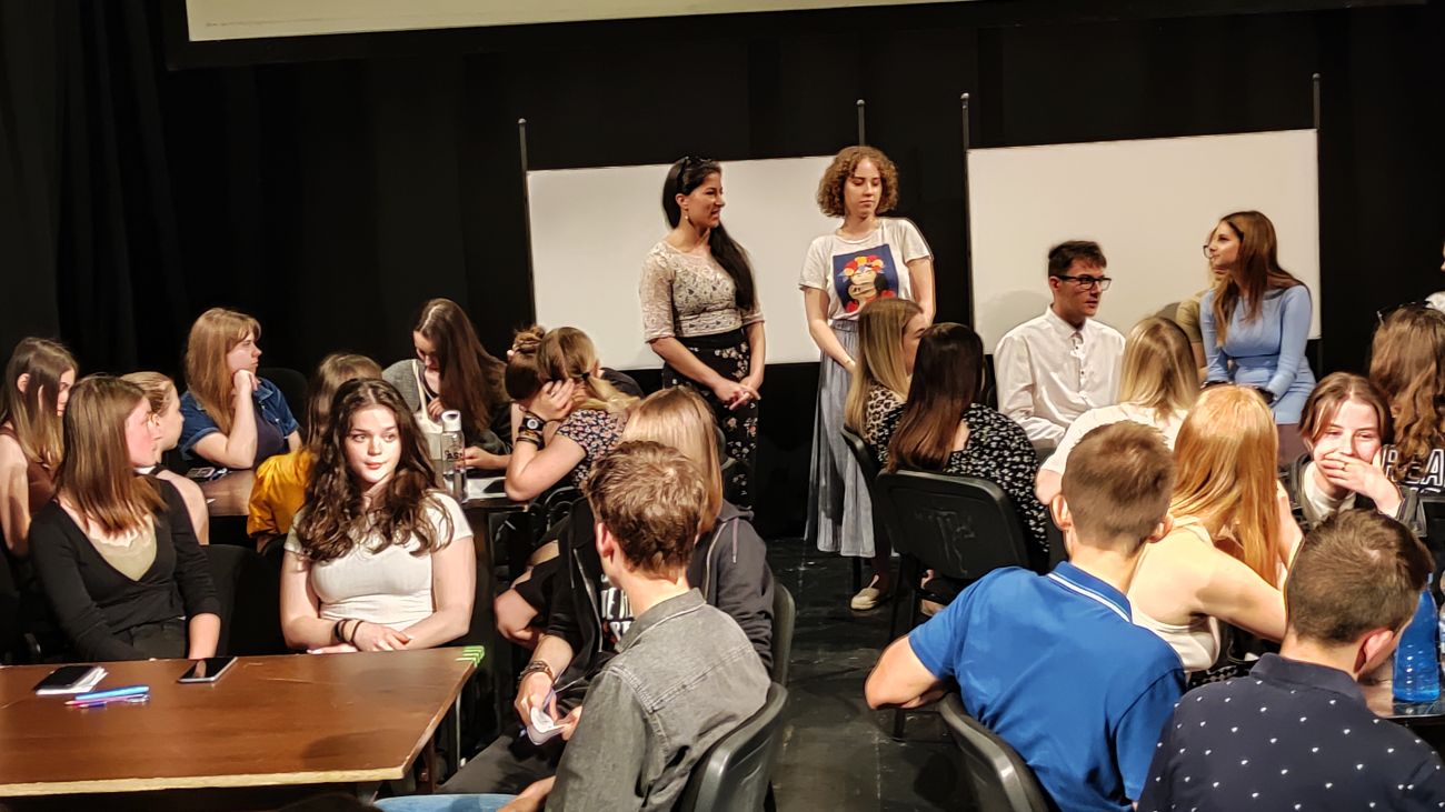 Kovács Gál Nóra és Darabos Diána az ifjakat leszólították a nézőtérről a játéktérre, és ott „játszottak” velük lelki egészségórát. A kérdéseimre felváltva válaszoltak.