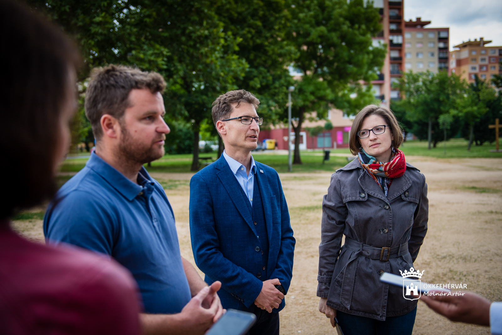 A tér felújításáról Cser-Palkovics András Fehérvár polgármestere a Polgármesteri Hivatal Környezetvédelmi Irodájának vezetőjével Kálmán Lillával és a kivitelező Deep Forest Kft műszaki igazgatójával, Szekeres Péterrel közösen ismertette a héten kezdődő parképítés terveit. A környéken élőktől a kivitelezés idejére türelmet és megértést kértek!