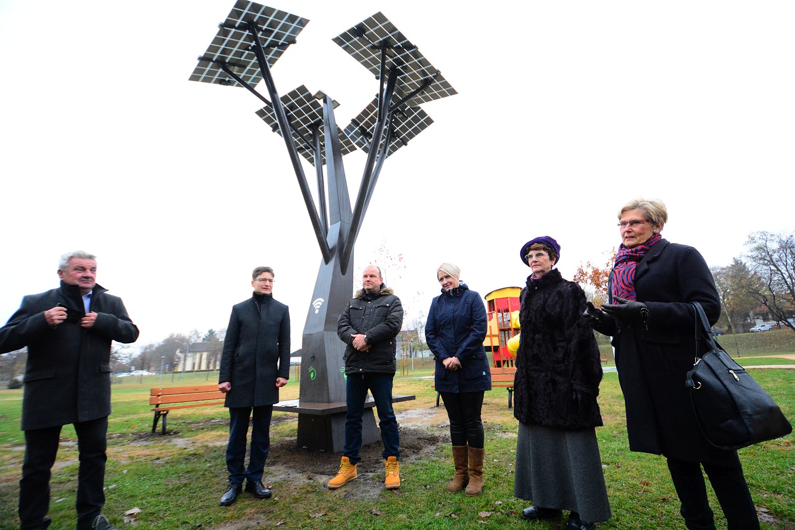 A kor kihívásainak megfelelő, a smart city fejlesztéseinek sorában jól beleillő a korszerű, környezetbarát technológia telepítése Székesfehérváron - mondta Cser-Palkovics András polgármester. A „fa” ágaira szerelt napelemek látják el energiával a nyolc USB-s töltőt és a Wi-Fi-t, amelyet ingyenesen vehetnek igénybe a parkba látogatók.