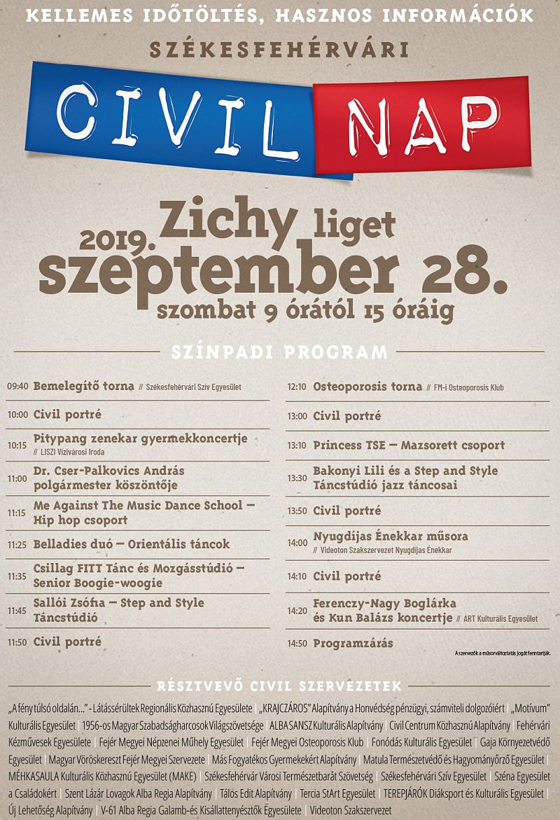 Már tradicionális rendezvénynek mondható a Civil Nap Székesfehérváron és egy jó alkalom arra, hogy az aktív szervezetek meg tudják mutatni a város lakóinak, hogy mivel foglalkoznak, illetve önkénteseket is tudnak toborozni – mondta Molnár Tamás önkormányzati képviselő, civil és ifjúsági tanácsnok. "Ilyenkor az egyesületek egymással is tudnak beszélgetni, hogy a civil élet milyen örömöket és problémákat rejt. Idén a Zichy ligetbe költözik a rendezvény, mely sokkal kellemesebb környezetet biztosít a családoknak, hogy részt vegyenek a programokon." Molnár Tamás kiemelte, hogy egyre több megkeresés érkezik fiataloktól, hogy milyen önkénteskedési lehetőségek vannak a városban és hogyan tudnak csatlakozni a különböző programokhoz. A szombati nap nagyon jó lehetőséget kínál mindenkinek, hogy akik szeretnének önkénteskedni a városban, megtalálják azt a szervezetet, melyhez csatlakozni tudnak.