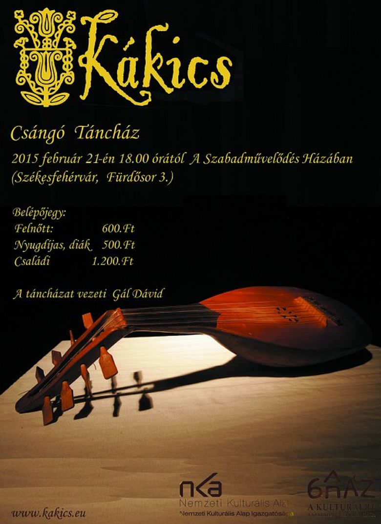 Február 21-én ismét táncházba invitál a Kákics zenekar. Ez alkalommal A Szabadművelődés Háza ad helyet a programnak. A program 17 órakor kezdődik gyerek táncházzal, Gellár Évával és Gula Miklóssal, akik népi játékokkal, szokások megelevenítésével bírják mozgásra az ifjúságot. Ezt követően a nagyoknak 18 órától szervezek Csángó táncházat.