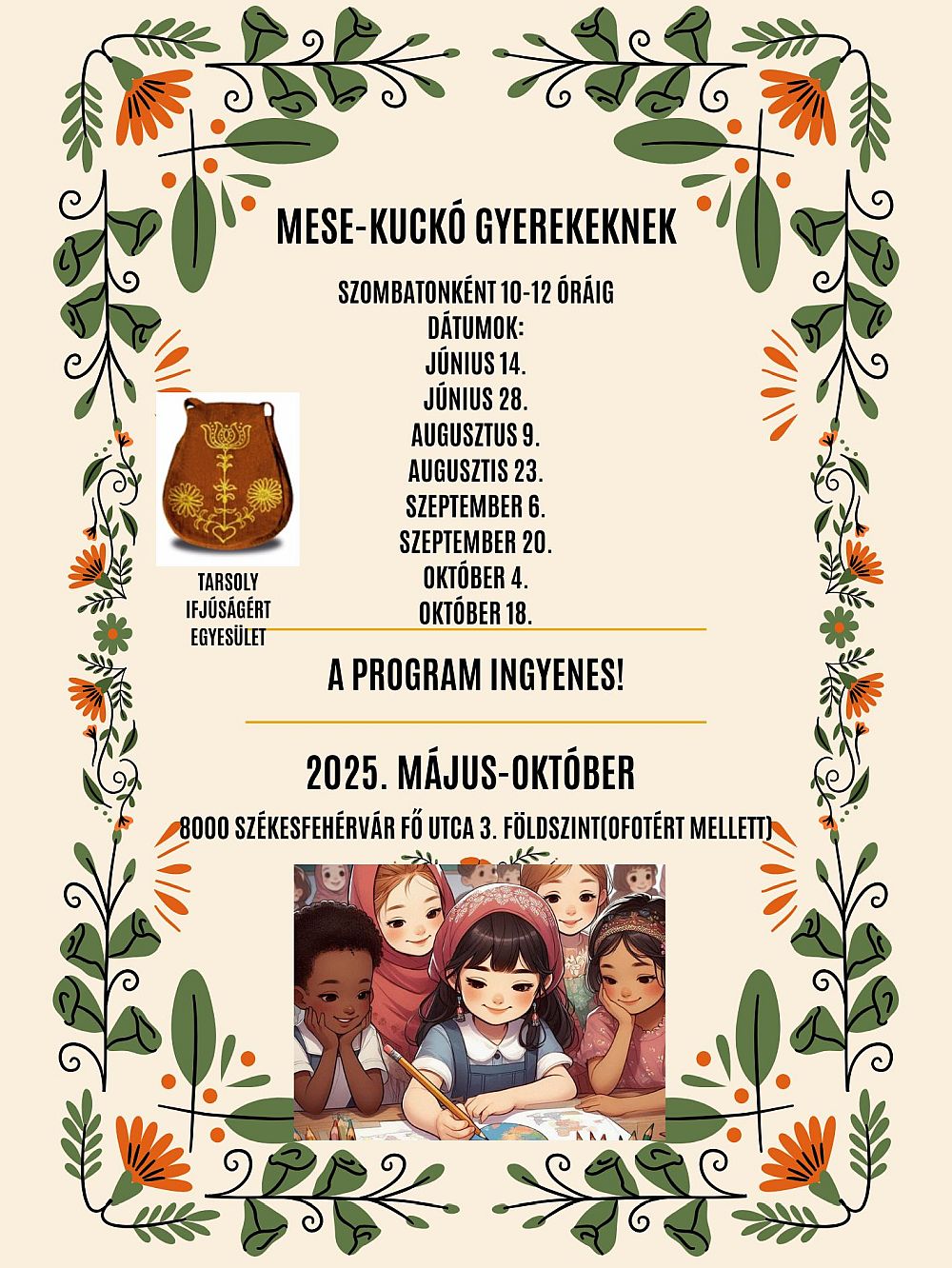 Újabb fejezetéhez érkezik a Tarsoly Ifjúságért Egyesület Mesekuckó című programsorozata. Július 12-én, szombaton 10.00 órára várják a gyerekeket a nyárhoz kapcsolódó történetekkel a Fő utca 3. szám alatt.