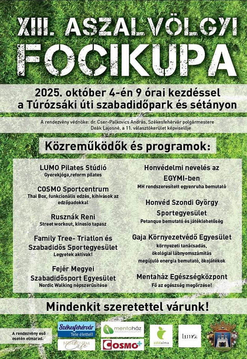 Szombaton rendezik a XIII. Aszalvölgyi Focikupát a Túrózsáki szabadidőparkban