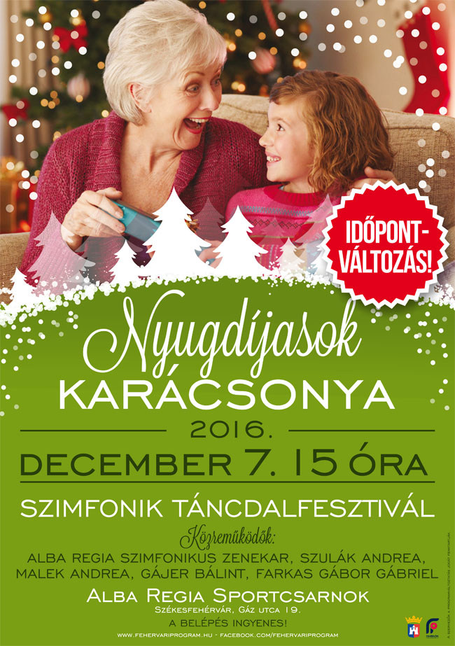 Fehérvár Önkormányzata minden év decemberében színes, szórakoztató előadással ajándékozza meg az idősebb generáció képviselőit. Idén az egykori táncdalfesztiválok hangulatát idézi majd az Alba Regia Szimfonikus Zenekar műsora december 7-én, szerdán 15.00 órakor az Alba Regia Sportcsarnokban.