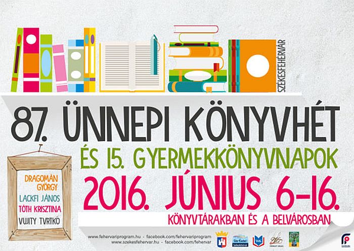 Minden korosztály találhat kedvére való programot a 87. Ünnepi Könyvhét és 15. Gyermekkönyvnapok fehérvári rendezvénysorozatának kínálatában. A megnyitót június 9-én, csütörtökön 17 órakor tartják a Vörösmarty Társaság termében, de a programok már június 6-án, hétfőn elindultak, és tíz napon át tartanak. A könyvhét sztárvendége VujityTvrtko lesz; a tíz nap során olvasóik találkozhatnak többek között Tóth Krisztinával, Dragomán Györggyel és Lackfi Jánossal is.