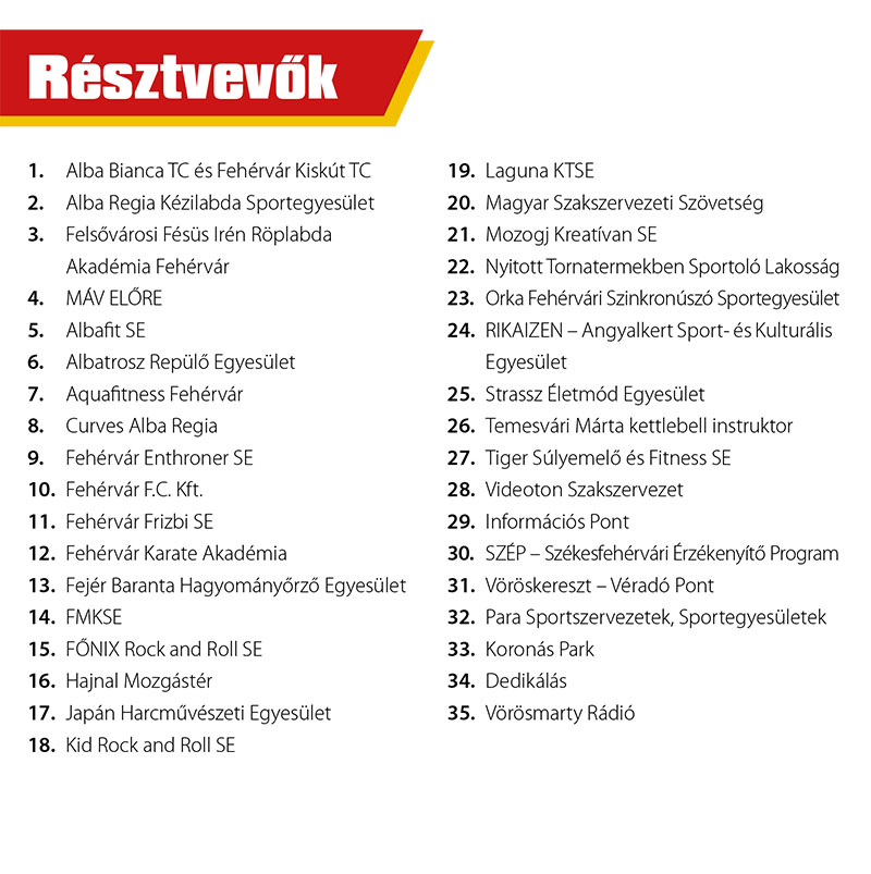 Sári Máté, a Fehérvári Programszervező Kft. rendezvényszervezője elmondta, hogy közel 50 kitelepülő lesz, számos sportklub és egyesület képviselteti magát a Bregyó közben. A Csónakázó tónál is számos programmal készülnek, a tó mellett gyerekjátszó, kézműves sarok lesz, a megújult Csónakázó tavon pedig változatos sportolási lehetősége lesznek csónakokkal, evezőhajókkal.