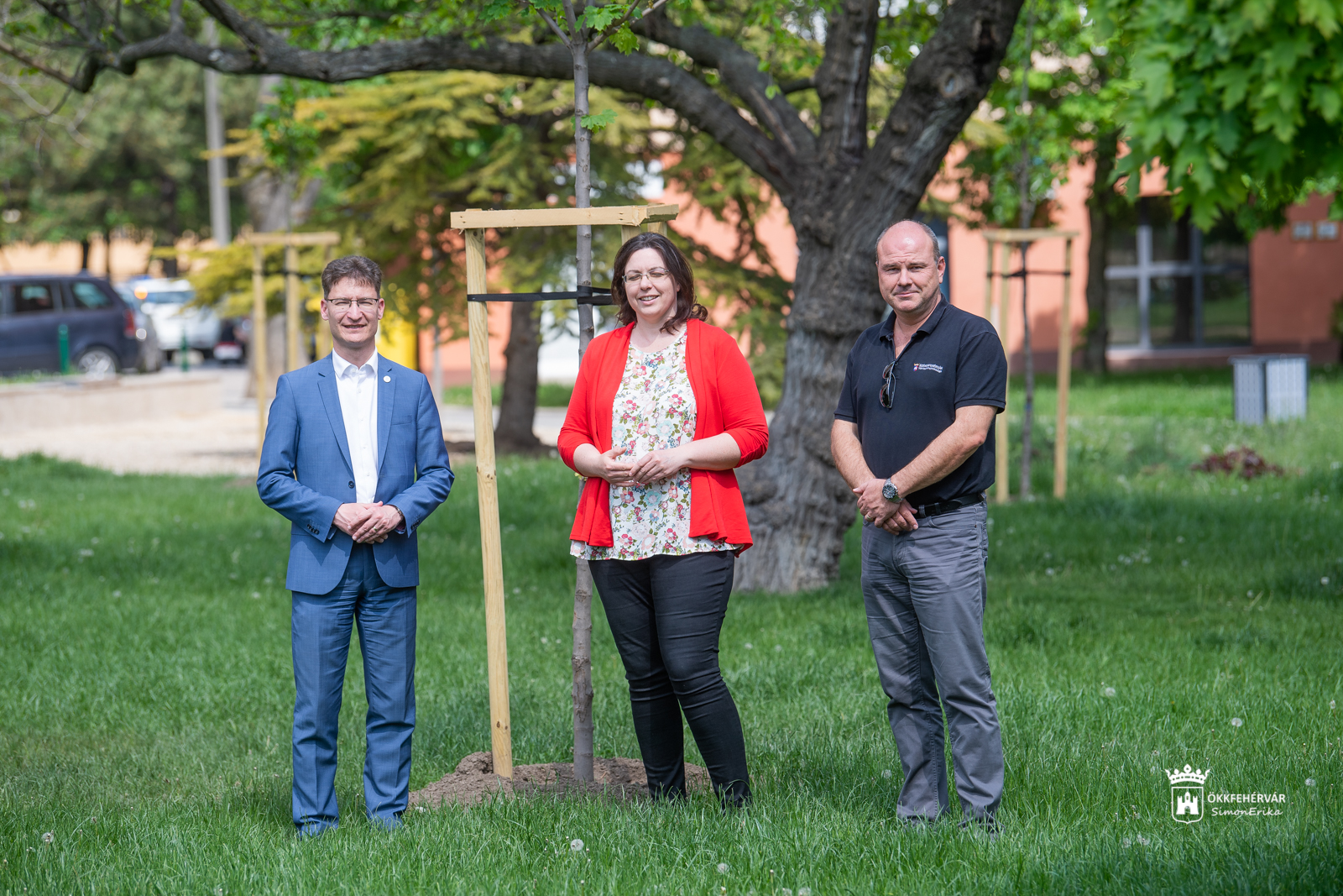 A Városgondnokság által elültetett születés fáinál Cser-Palkovics András polgármester a kezdeményezést elindító Horváth-Tancsa Ágnessel és Bozai István városgondnokkal közösen tartottott tájékoztatót.