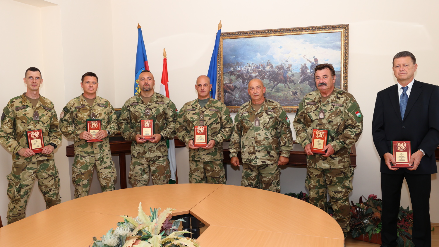 Vokla János ezredes ezúttal az Összhaderőnemi Informatikai Főközpont parancsnokát, Szabó Miklós alezredest; a Törzstámogató Század sorait erősítő Vass László főtörzsőrmestert; valamint, a Híradózászlóalj állományában szolgáló Zsargó Zsolt őrmestert és Varga Zoltán szakaszvezetőt köszöntötte fel. Rajtuk kívül, a Logisztikai Zászlóaljnál szolgáló Tóth István szakaszvezetőt, továbbá, a Dunántúli Híradó és Informatikai Főközpontnál dolgozó Kuncz Albert honvédelmi alkalmazottat méltatta kerek születésnapja alkalmából.