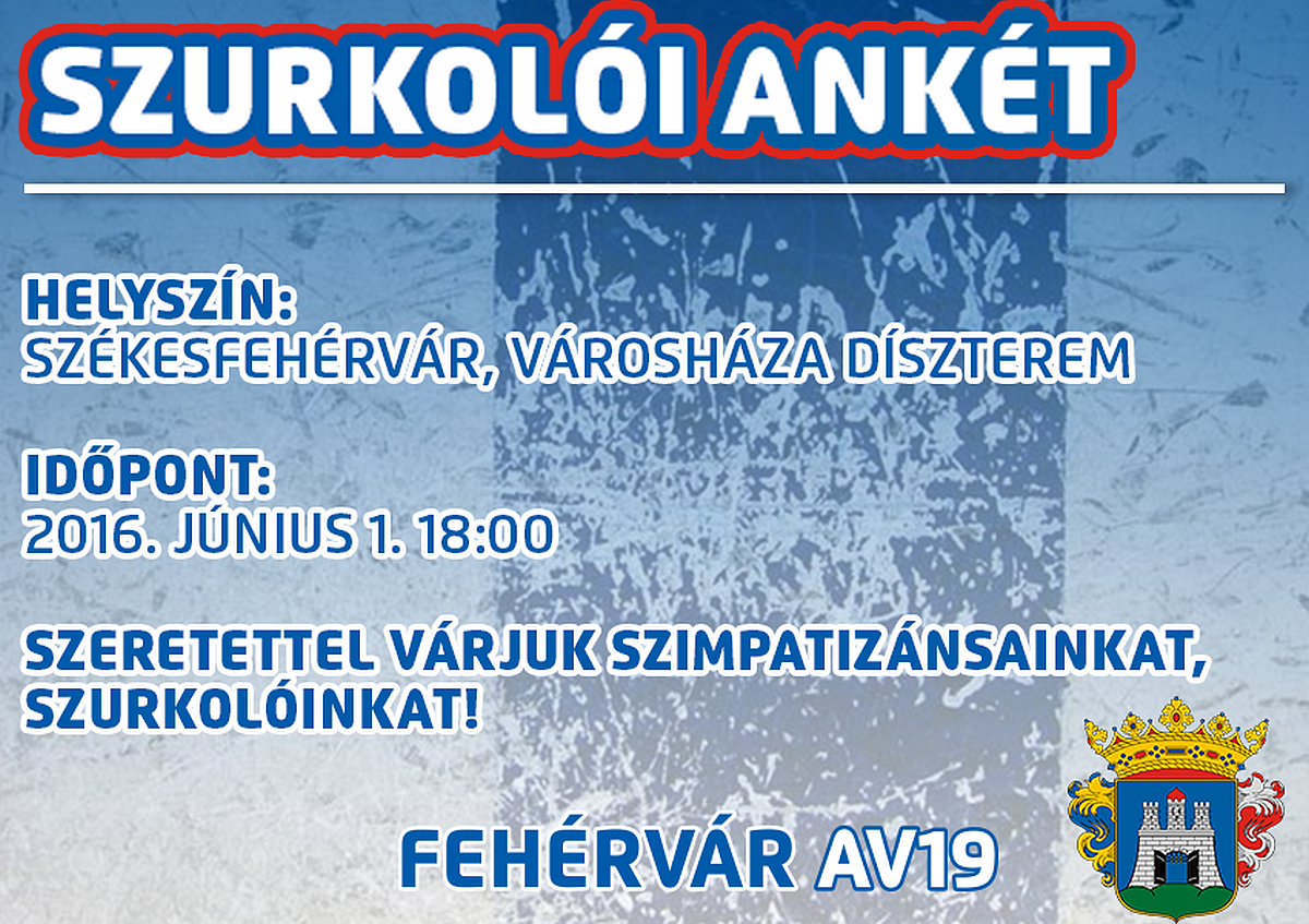 Szokásos évzáró szurkolói ankétját tartja szerdán este 18.00 órától a Városháza Dísztermében a Fehérvár AV19. A rendezvényen a klub meghívására jelen lesz dr. Cser-Palkovics András, Székesfehérvár polgármestere. Minden sportszerető és a jégkoronggal szimpatizáló érdeklődőt szeretettel várnak a szerdai szurkolói ankétra!