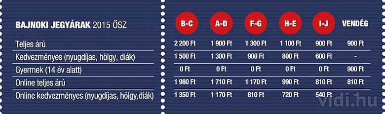 Külső pénztárak: bajnoki mérkőzések előtt két órával