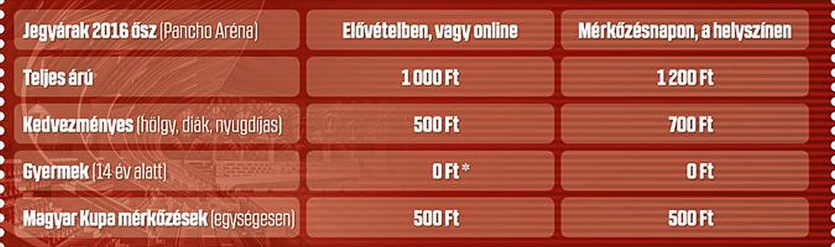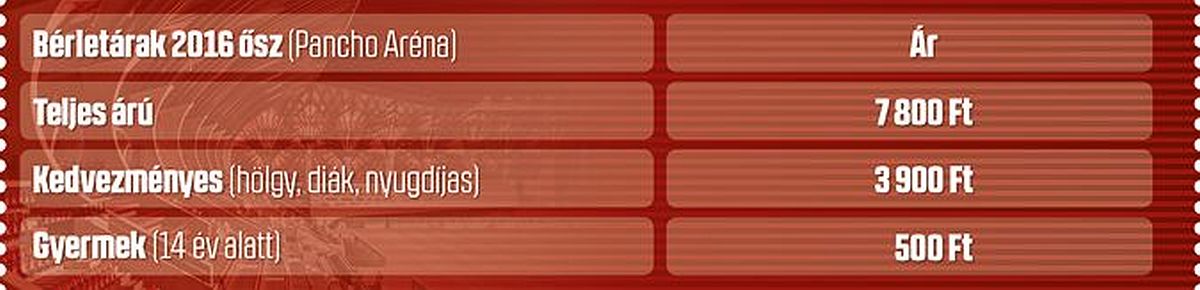 - A Pancho Aréna pénztárai a meccsek előtt 2 órával nyitnak, így a helyszínen is lehetőség nyílik jegyvásárlásra klubkártya felmutatása nélkül, de javasolják, hogy ne hagyják a meccsnapra a belépők megvásárlását!