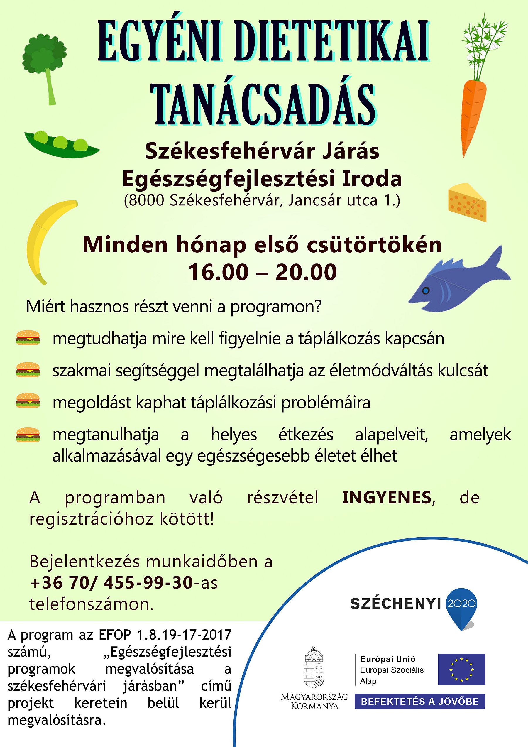 Egyéni dietetikai tanácsadás lesz minden hónap első csütörtökén, amely szakmai segítségnyújtás az egészséges táplálkozás kialakításához, ingyenes, de előzetes regisztrációhoz kötött.