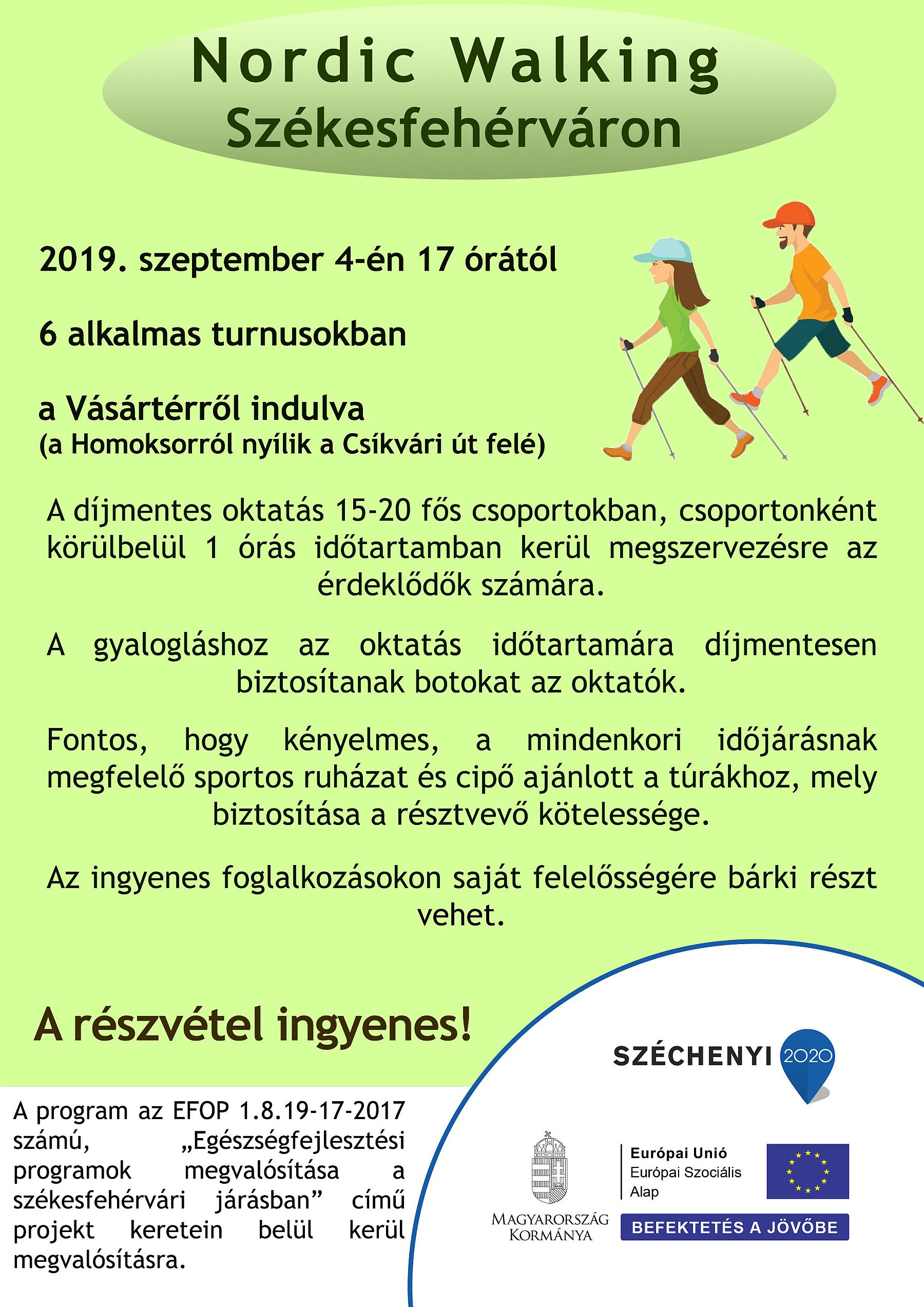 szerdán 17 órakor hat alkalmas, díjmentes nordic walking oktatás indul a Vásártérről.