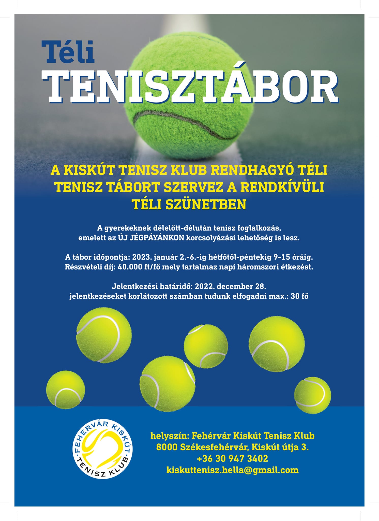 Tábort a Kiskút Tenisz Klub is szervez az újév első hetére. Ebben a napközis táborban teniszezni és korcsolyázni tudnak majd a gyerekek. A jelentkezéseket december 28-ig várják a szervezők.