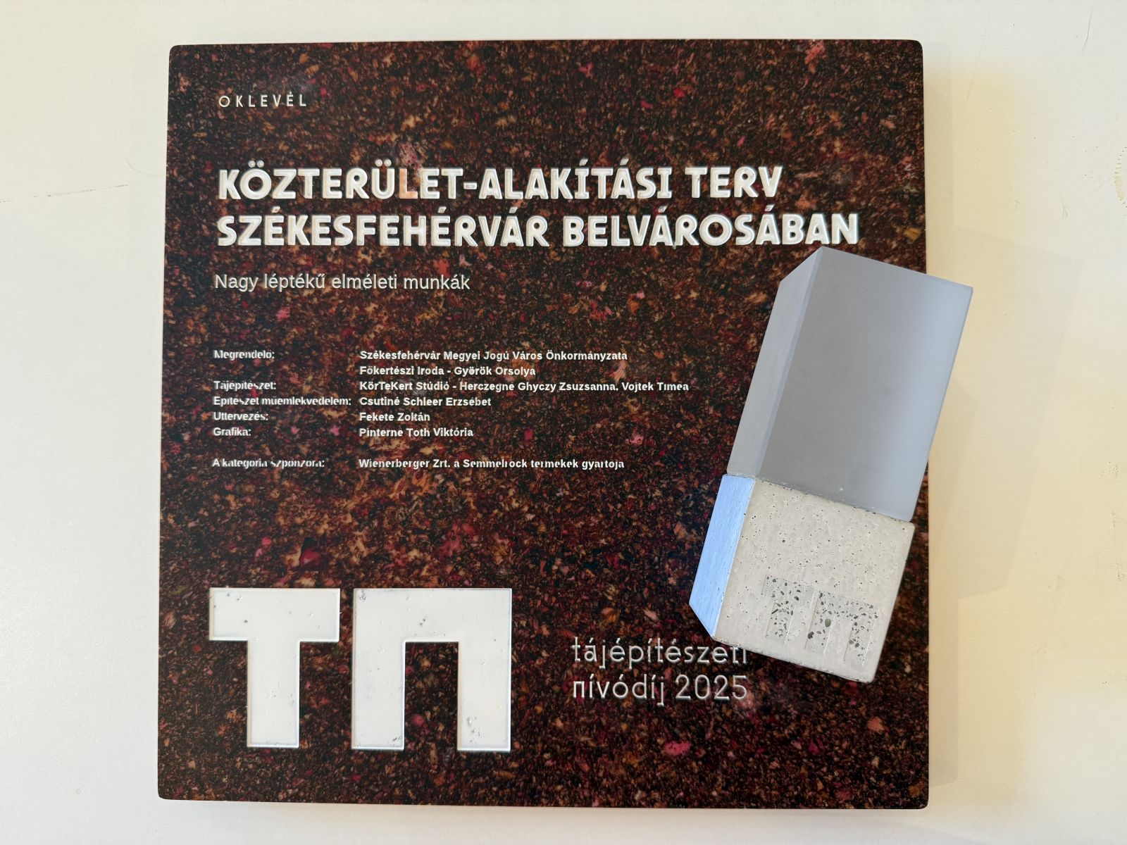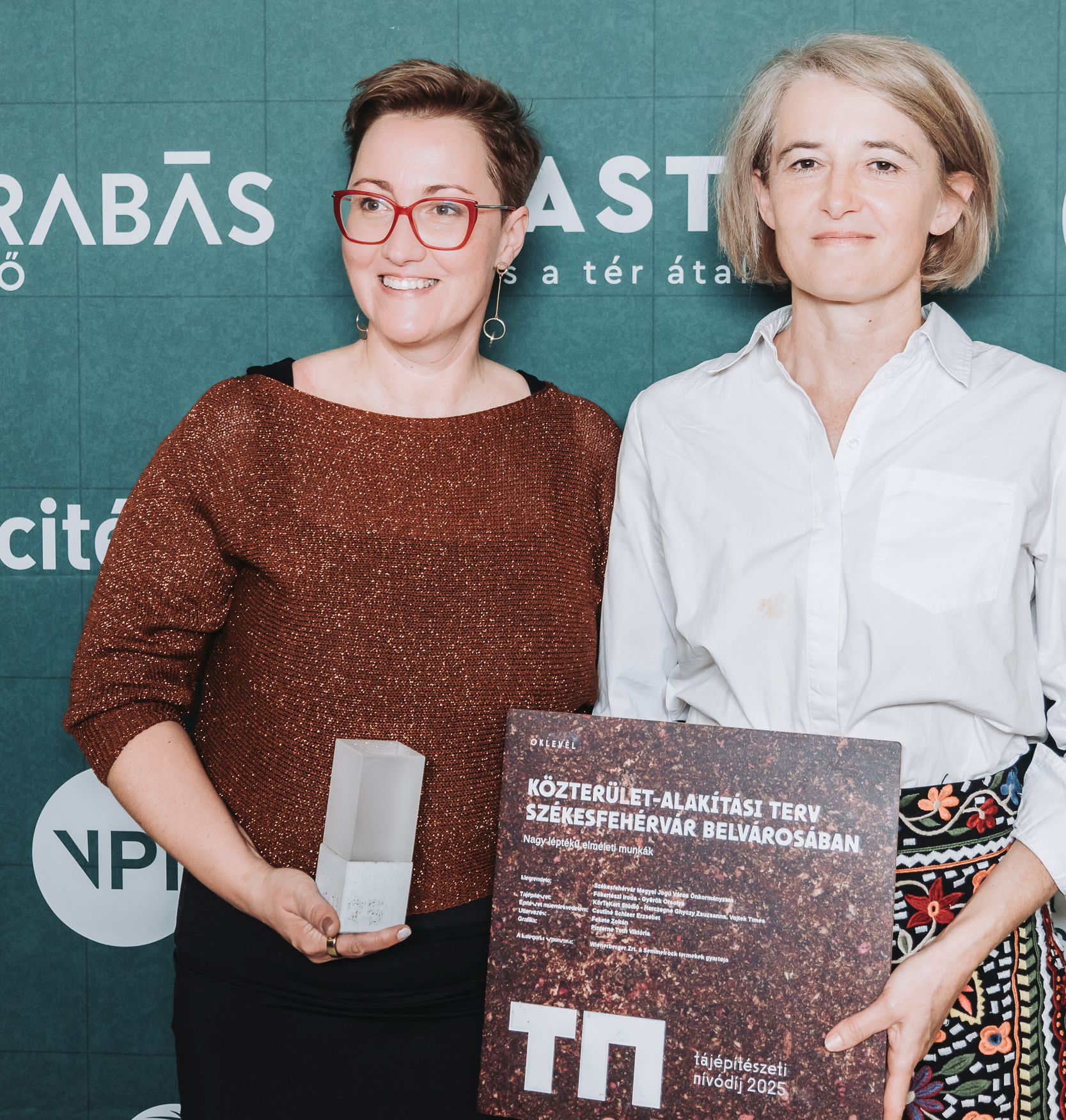 Nagy öröm, hogy a díjazottak között van egy székesfehérvári alkotópáros is: Herczegné Ghyczy Zsuzsanna és Vojtek Tímea a „Nagy léptékű elméleti munkák” kategóriában vehették át a Tájépítész Nívódíjat, a „Székesfehérvár Történelmi Belváros Közterület-alakítási Terv” tájépítészeti tervezéséért.