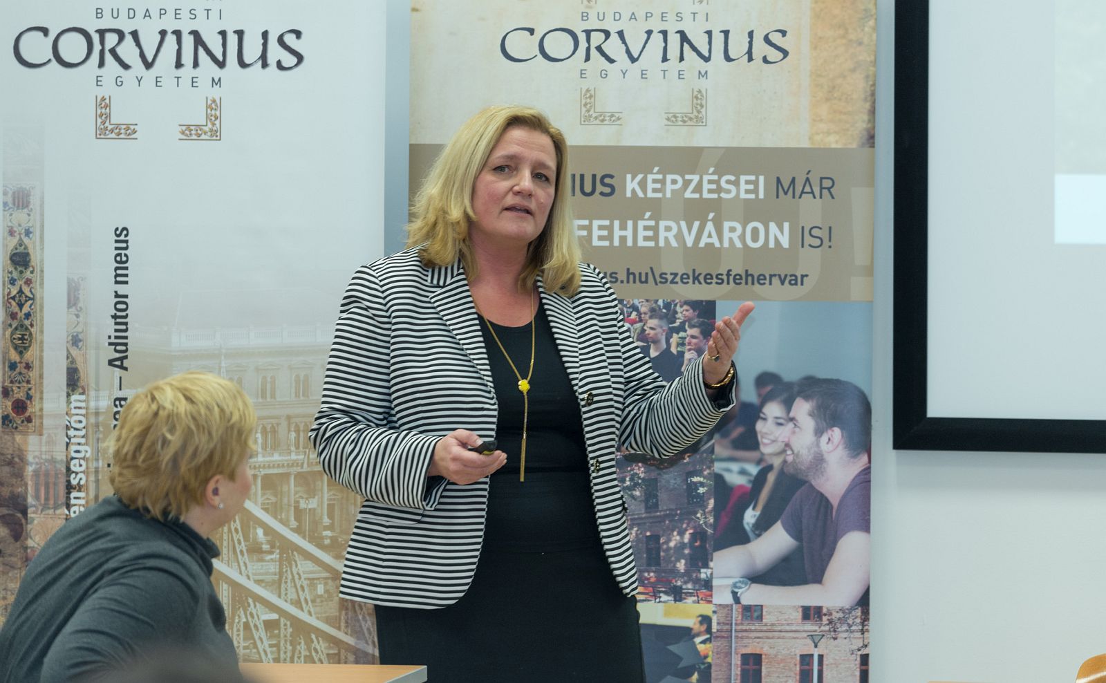 A konferenciát Székesfehérvár alpolgármestere, Mészáros Attila nyitotta meg, aki kiemelte, hogy a város jövője elképzelhetetlen a felsőoktatás megerősítése nélkül. "Látjuk egyrészt az igényeket, amelyek a munkaerőpiacról jönnek és érezzük azt a nyomást, ami jelzi, hogy létkérdés a város számára a felsőoktatás megerősítése. Ma is 1500-2000 olyan üres álláshely van a városban, amelyeknek egy része magas szintű pénzügyi-gazdasági szakembert kíván, emellett a műszaki-mérnöki igények is nagyon jelentősek." - hangsúlyozta Székesfehérvár alpolgármestere, aki szólt arról is, hogy komoly tapasztalatokat szerezhetnek a duális képzésben részt vevő corvinusos diákok a fehérvári székhelyű multinacionális cégeknél és középvállalatoknál.