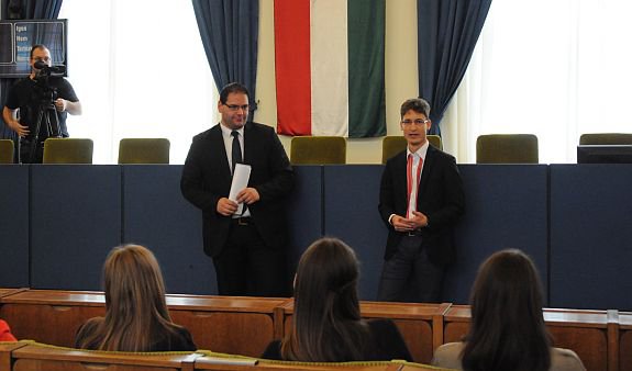 A Nemzeti Közszolgálati Egyetem diákjait fogadta a Városházán dr. Cser-Palkovics András polgármester és Mészáros Attila ifjúsági tanácsnok. A polgárjogi és közjogi TDK-csoport tagjai egy tanulmányi kirándulás keretében ismerkedtek a közgyűlés munkájával és a közigazgatási életpályával. A hallgatók többek között az uniós pályázatokról és a Hiemer-ház felújításáról is érdeklődtek Székesfehérvár polgármesterétől.
