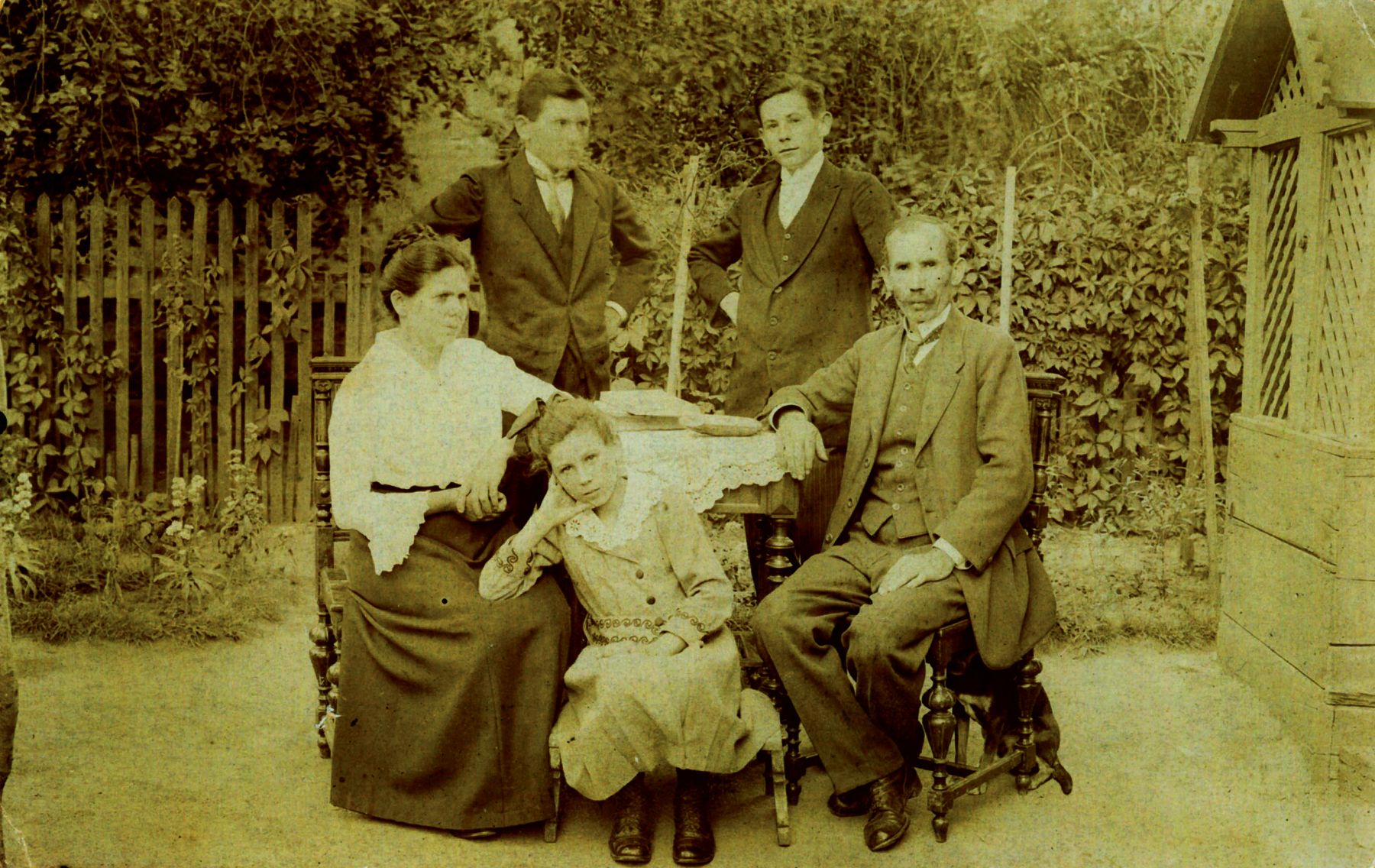 A képen a Tarics család látható egy 1921. szeptember 4-ére dátumozott képeslap előlapjáról. Az asztalnál Tarics Jánosné, született Radács Anna és Tarics János bognármester ülnek, középen lányuk, Rózsa. Mögöttük balról áll két fiuk, Ferenc és Jenő, aki 1922-ben magyaróvári gazdász hallgató lett.