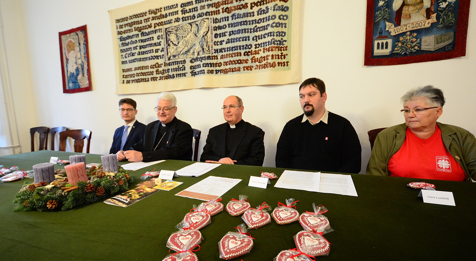 Spányi Antal megyéspüspök, Ugrits Tamás atya, püspöki irodaigazgató, Cser-Palkovics András polgármester, Zagyva Richárd a Magyar Katolikus Karitász igazgató helyettese és Nagy Lajosné az Egyházmegyei Karitász Központ veztője közösen tartott sajtótájékoztatót az adventi időszak egyházi programjairól.