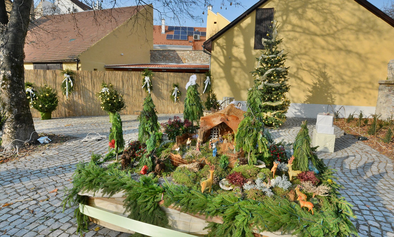 Adventi fotózás az udvarban a Betlehem előtt