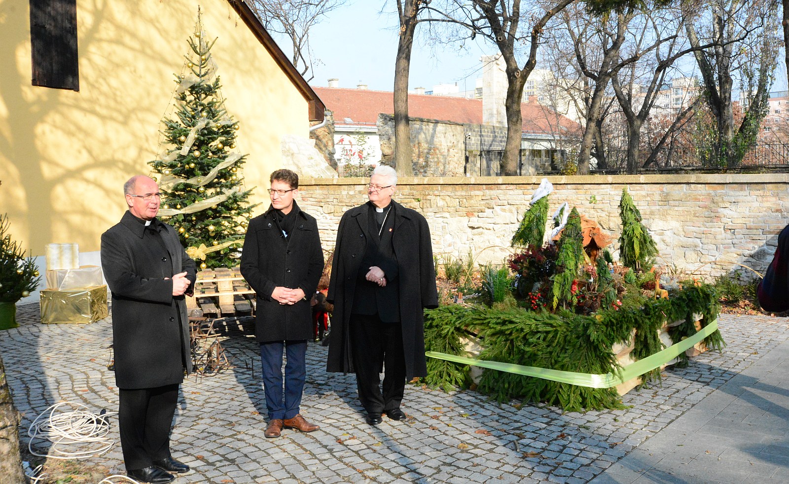 Ugrits Tamás irodaigazgató az Adventi udvar programjait mutatta be. „Karácsony örömhíre abban is megmutatkozik, hogy Isten helyet keres az emberek szívében és az emberek között és ezt egyszerűen, az igazság és a szeretet útján teszi. Jó együtt lépni az embertársainkkal és Istennel az udvarban.” Felhívta arra is a figyelmet, hogy az udvarra nyugodtan be lehet jönni már babakocsival is jönni, ugyanis az udvaron a burkolat is teljesen megújult. Egységes díszítés, egységes faházak vannak és a Betlehem is a korábbi évekhez hasonlóan, nagyon szép lesz. Fontosnak nevezte, hogy aki bejön a püspökségre, más szívvel menjen ki.