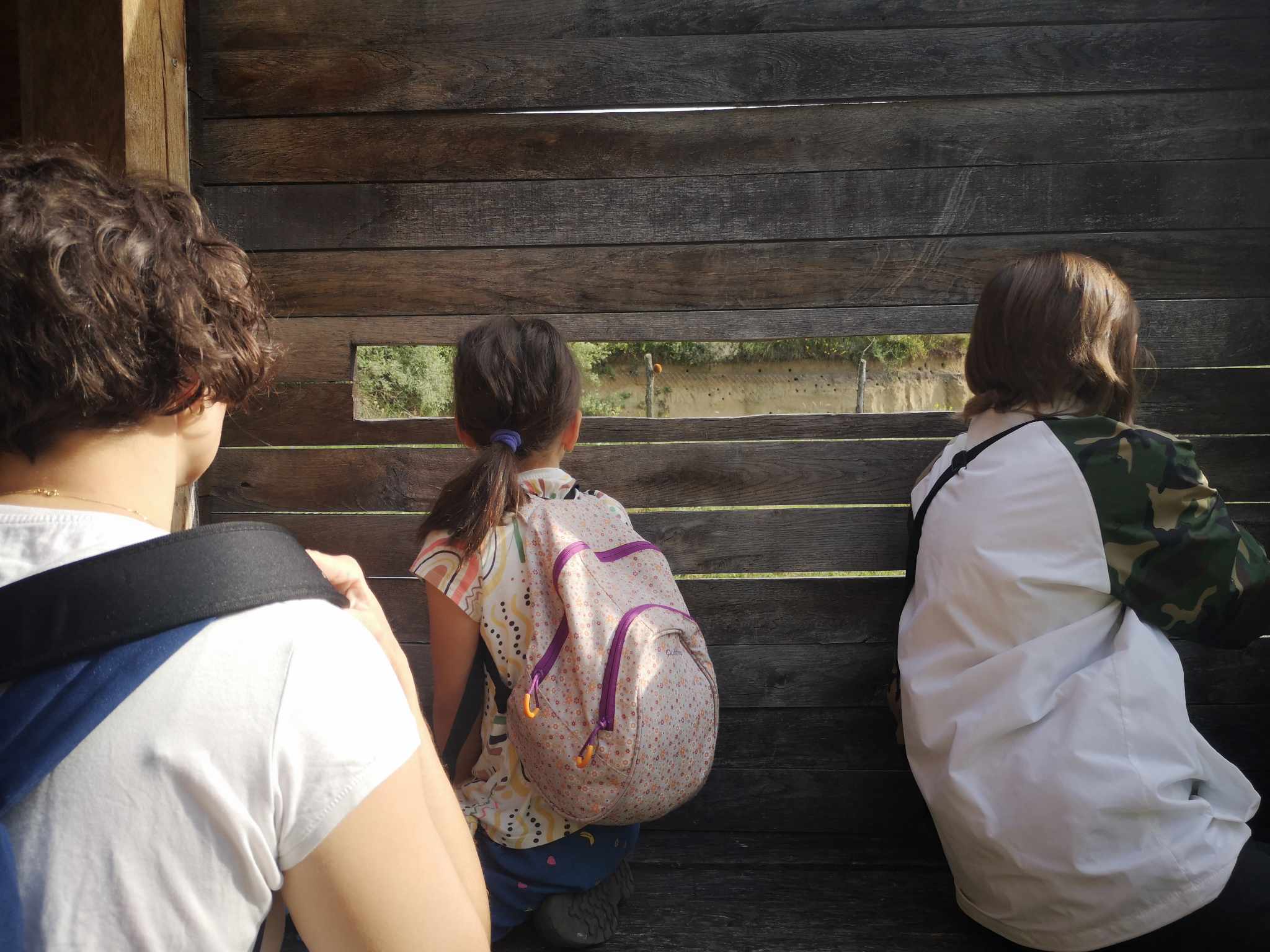 A gyurgyalag lesnél egy palánk mögött megbújva lehetett megfigyelni a tarka madarakat.