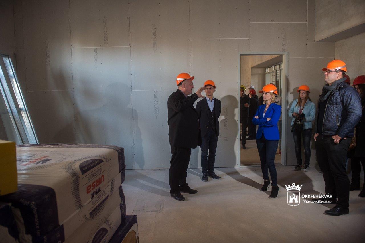 Az építkezést szerdán a helyszínen tekintette meg Hinek Mátyás projektmenedzser, Pavlik Lívia kancellár, Cser-Palkovics András polgármester és Mészáros Attila alpolgármester.