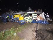 Teherautó borult fel Csákberénynél