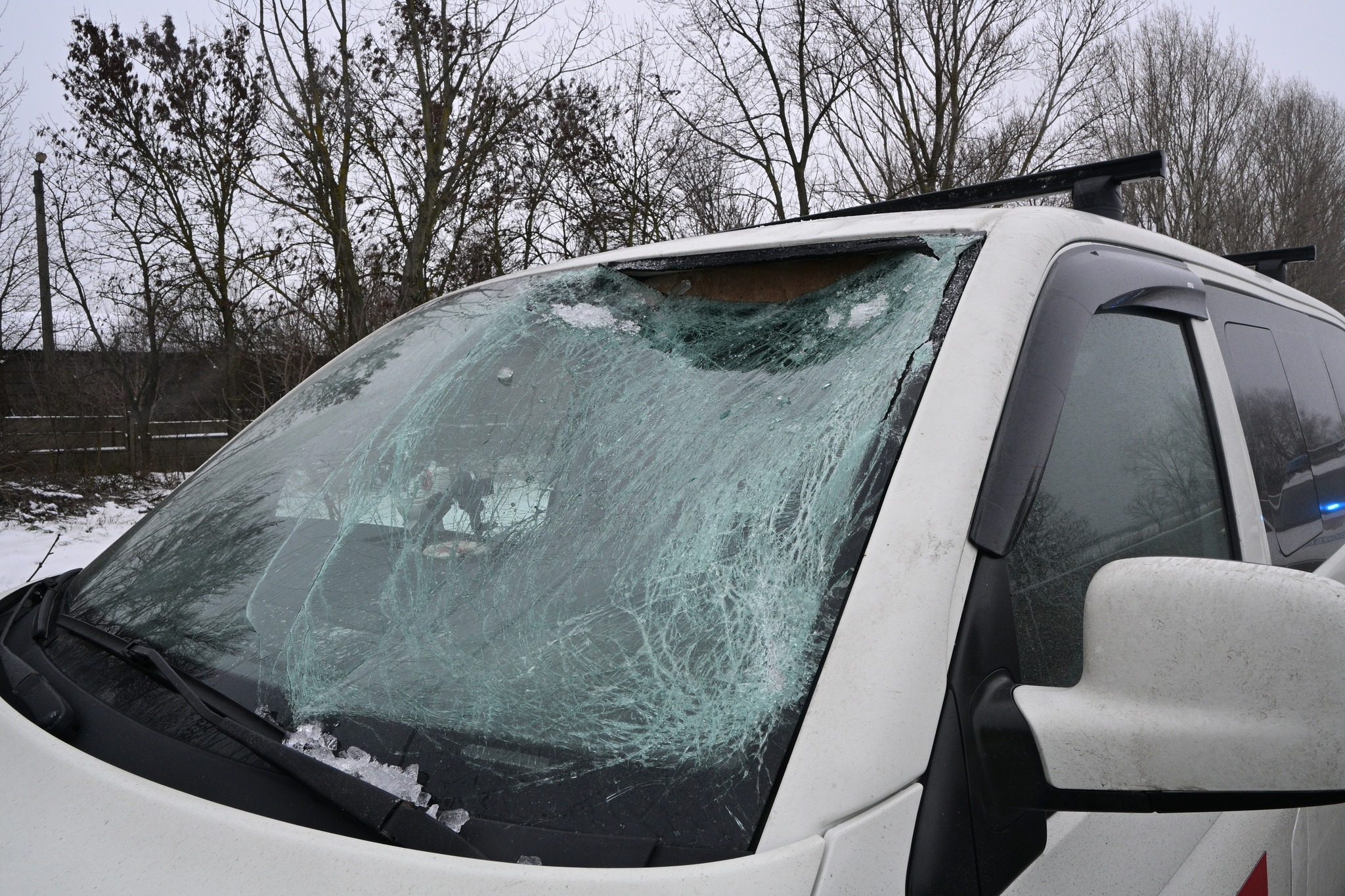 Teherautó tetejéről lehulló jég törte be egy kocsi szélvédőjét