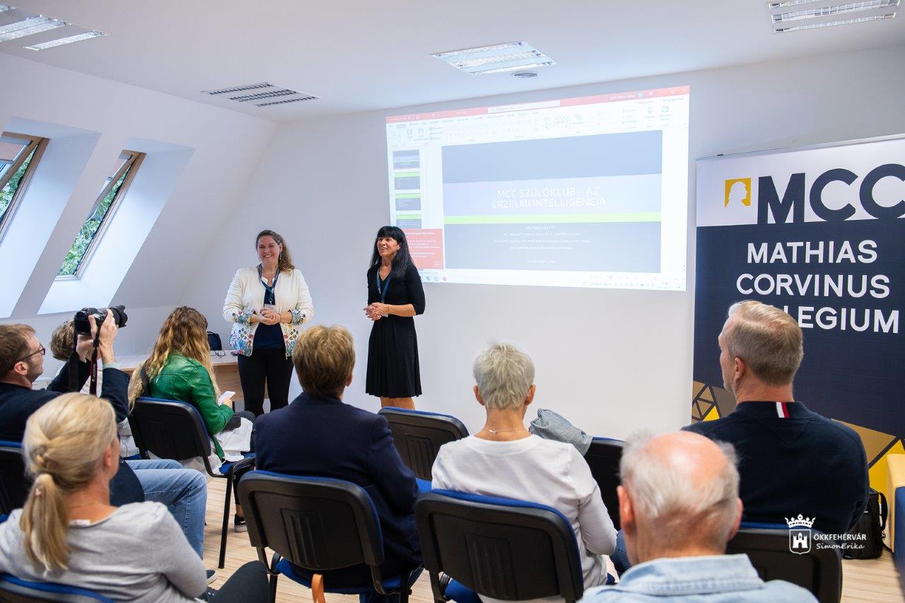 A Tehetség a négyzeten című előadás előtt Östör Annamária, a Mathias Corvinus Collegium Székesfehérvár képviseletvezetője is köszöntötte a résztvevőket, kiemelve, hogy az MCC 25 éve foglalkozik tehetséggondozással, egyetemisták, középiskolások és általános iskolások képzésével. "Nagy örömünkre a Mathias Corvinus Collegium Székesfehérváron is megnyitotta kapuit és most már két évfolyam jár hozzánk: ötödikesek és hatodikasok, illetve 70 középiskolás, akiknek biztosítjuk az iskolán túli képzést. Fontosnak tartjuk, hogy részt vegyünk a város életében, ezt a célt szolgálja a mai rendezvényünk, a Szülők Akadémiája is. Azt a címet adtuk neki, hogy Tehetség a négyzeten: ez abból jött, hogy Klebelsberg Kuno művelődéspolitikus, egykori közoktatásügyi miniszter mondta egyszer, hogy a világban a tehetséget négyzetre emelik, Magyarországon pedig gyököt vonnak belőle.. Mi azt szeretnénk, hogy a fehérvári gyerekek tehetségét négyzetre emeljük" - mondta el Östör Annamária.