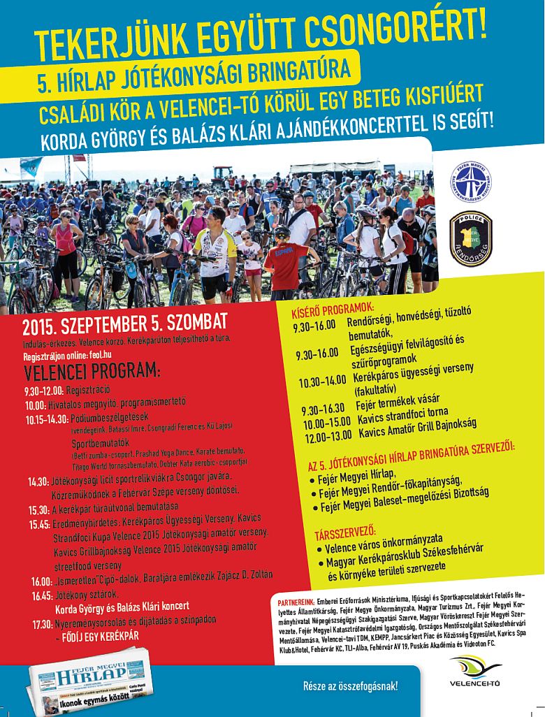 Immár ötödik alkalommal szervezi meg a Fejér Megyei Hírlap, a Fejér Megyei Rendőr-főkapitányság és a Fejér Megyei Baleset-megelőzési Bizottság a Családi kört a Velencei-tó körül. A Hírlap Bringatúra egy családi program, nem verseny, nem a győzelem a fontos, hanem a részvétel, a tömeges demonstráció az egészséges életmód mellett, a figyelemfelhívás a Velencei-tó körüli biztonságos kerékpározás lehetőségére. Az idei esemény jótékony célt is szolgál.