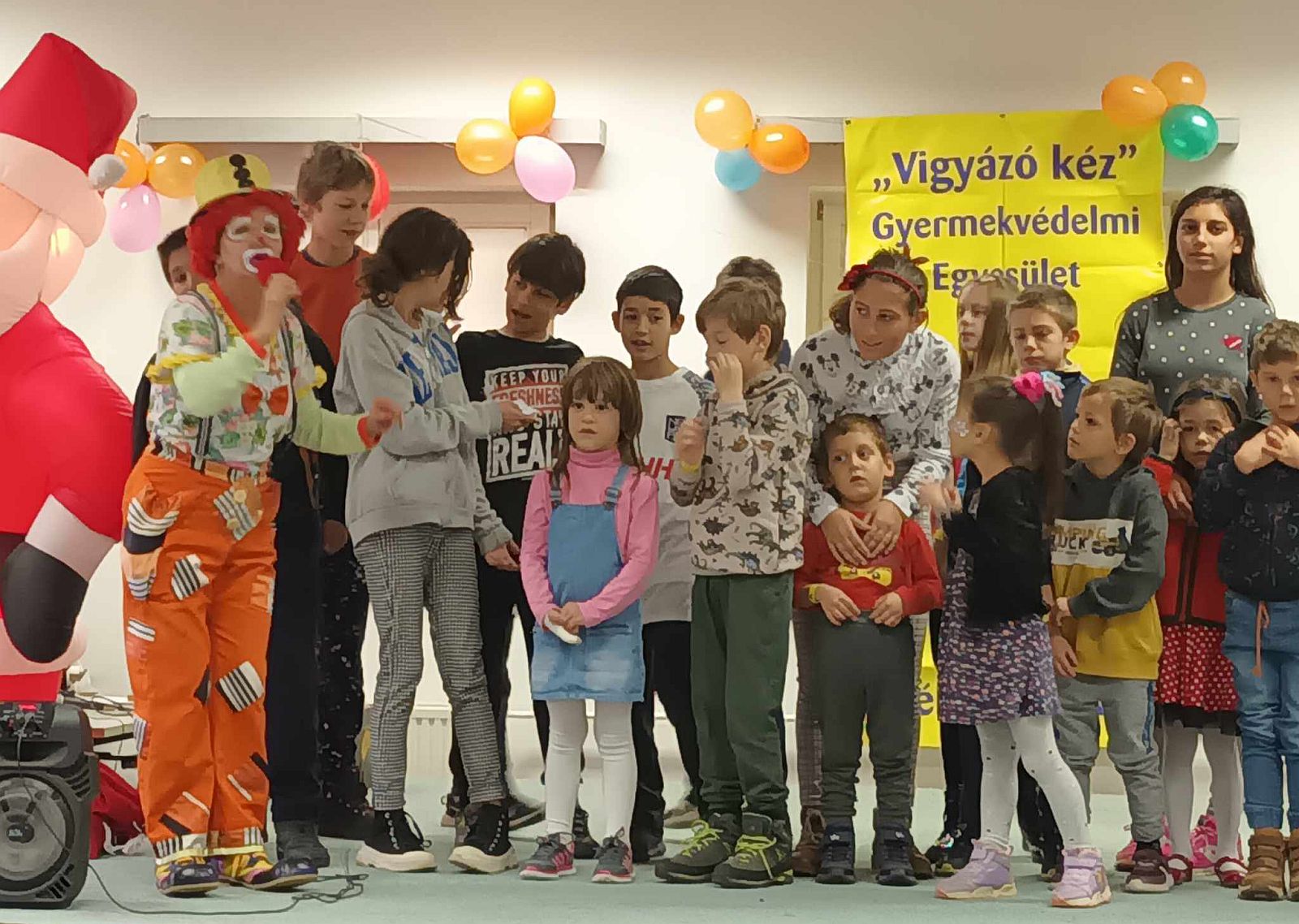 Ebéd előtt a MegaDance táncosainak vidám, zenés előadása következett. Ebéd után pedig a Csetényben nevelőszülőknél élő 16 éves Balogh Krisztofer fergeteges zenés műsora csodálattal töltötte el vendégeinket, majd a szintén állami gondozásban nevelkedő Rácz testvérek táncát láthatta a közönség. A tombola sorsolás után a KID Rock and Roll SE kis táncosai Bondor Virág vezetésével 30 perces műsorral lepték meg a 3-20 év közötti vendégeket és Csídei Petra iletve Karácsony Péter szalsza, pachata és animációs táncaira a várva-várt Télapó is megérkezett.