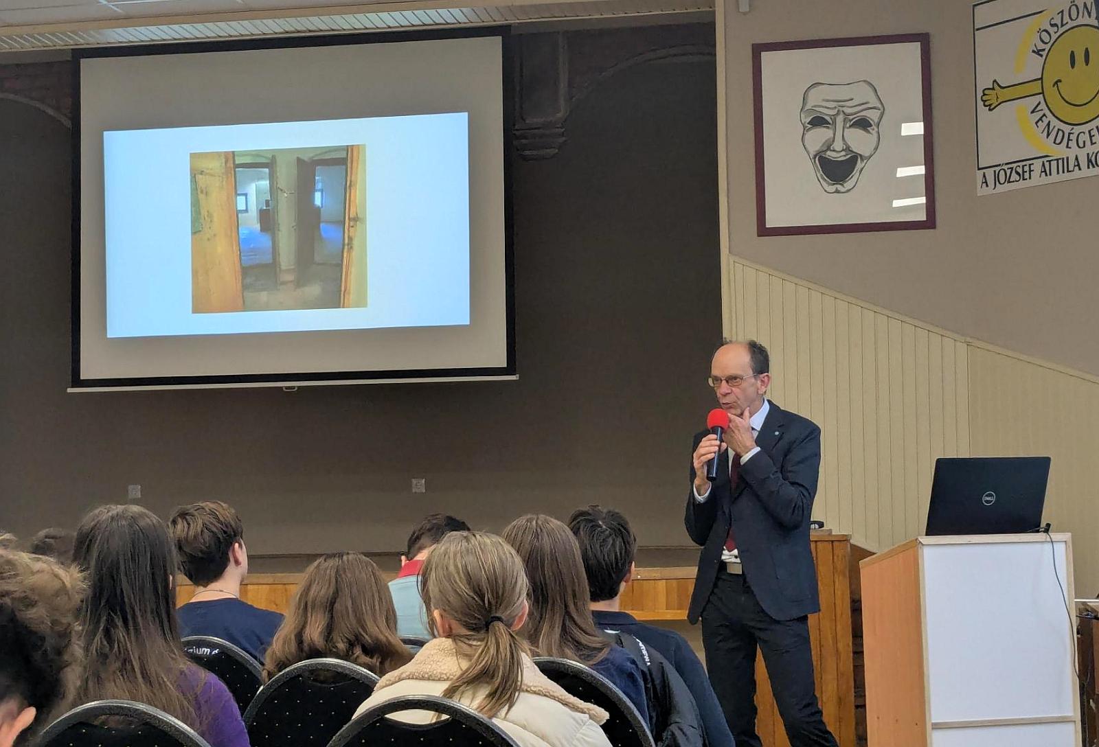 Ezzel párhuzamosan Dr. Gajda Péter Pál tanár úrtól hallhattak a diákok hasonlóan kiemelkedő színvonalú előadásokat a József Attila Kollégium előadótermében.