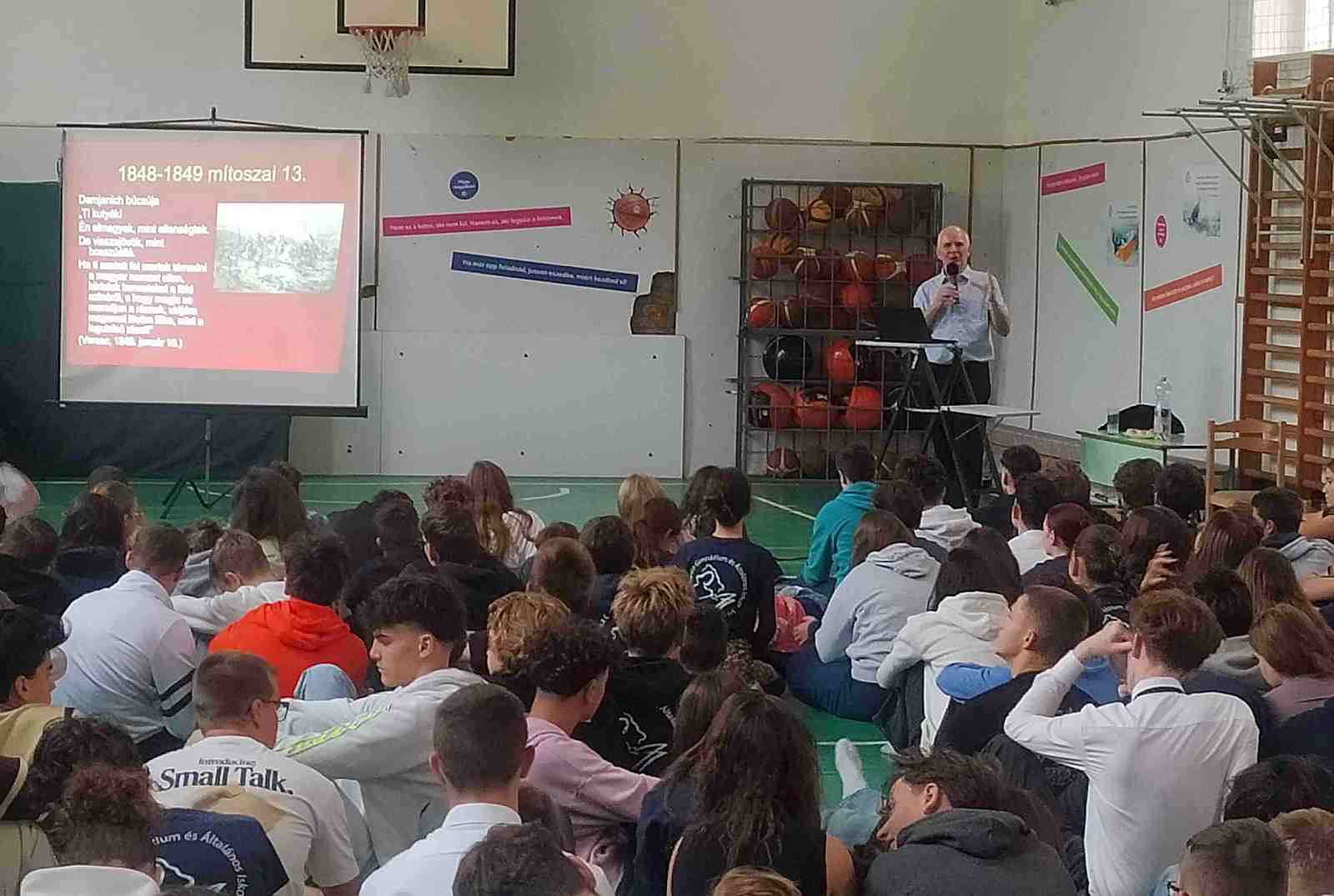 A gimnázium volt diákja, a Széchenyi-díjas magyar történész, publicista, a történelem OKTV bizottság tagja, Dr. Hermann Róbert, aki számos, az 1848-as forradalommal és szabadságharccal foglalkozó könyv szerzője is, a szabadságharc körüli mítoszokról és legendákról tartott humoros, élvezetes és információgazdag előadást.